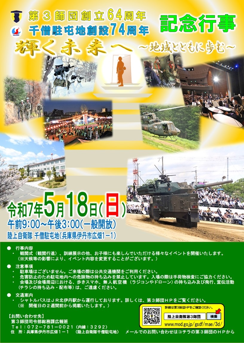 僧駐屯地で「第3 師団創立64 周年・千僧駐屯地創設74 周年記念行事」が実施されました。